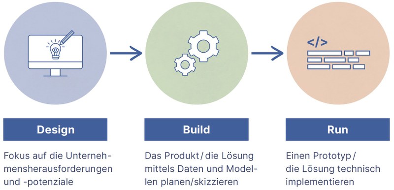 - Phase 3 (Run): In der Run-Phase wird die KI-Lösung in die produktive Umgebung des Unternehmens integriert und angewendet.