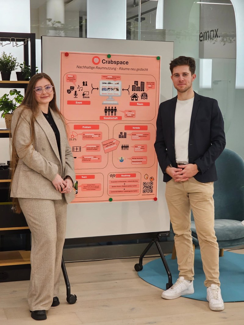 Gemeinsam mit einem Studienkollegen arbeite ich an unserem Projekt Crabspace, bei dem wir uns intensiv mit der nachhaltigen Nutzung von Raum und Infrastruktur auseinandersetzen. In unserem Projekt befassen wir uns damit, leerstehende oder wenig genutzte Räume sichtbar zu machen und sie für lokale Events und Begegnungen zugänglich zu machen. Dieser Prozess zeigt mir immer wieder, dass Nachhaltigkeit oft nicht bedeutet, komplett neu zu denken, sondern vorhandene Ressourcen intelligenter zu nutzen.