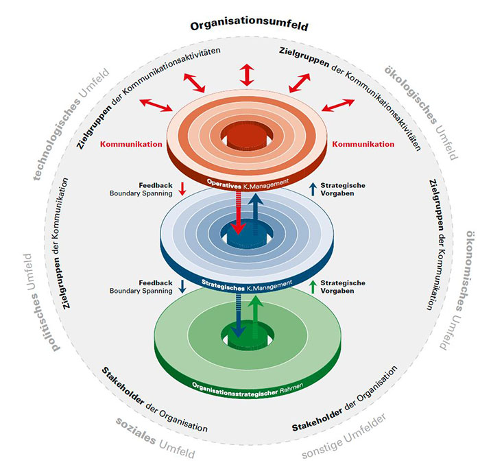 Ein zentrales Fundament bildet das FHNW-Modell des integrierten Kommunikationsmanagements, das im Rahmen eines zweijährigen Forschungsprojekts mit über 700 Unternehmen entwickelt wurde. Bei diesem systematischen Konzeptions- und Führungsprozess werden die Kommunikationsziele und die Kommunikations-Strategie aus den übergeordneten Zielen und der Strategie der Gesamtorganisation logisch abgeleitet. Das Modell vereint wissenschaftliche Fundierung mit einem hohen Praxisbezug – erarbeitet aus der Praxis für die Praxis.