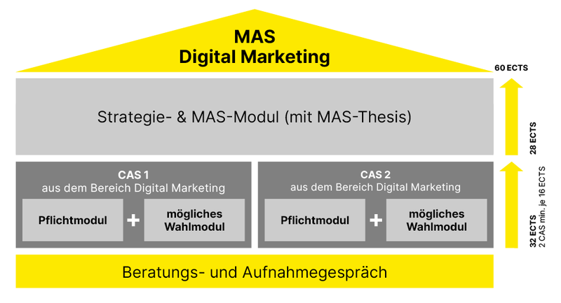 Der MAS Digital Marketing ist modular aufgebaut und besteht aus: