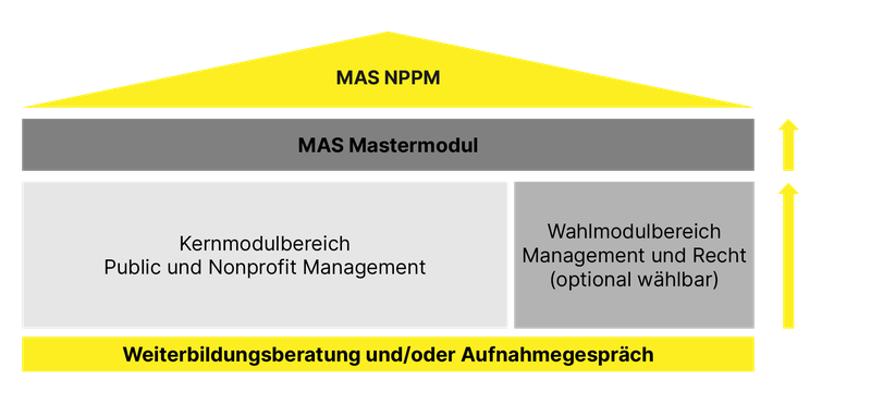 Das MAS-Programm besteht aus drei frei wählbaren CAS-Zertifikatslehrgängen und einem abschliessenden Mastermodul mit begleiteter Masterarbeit.