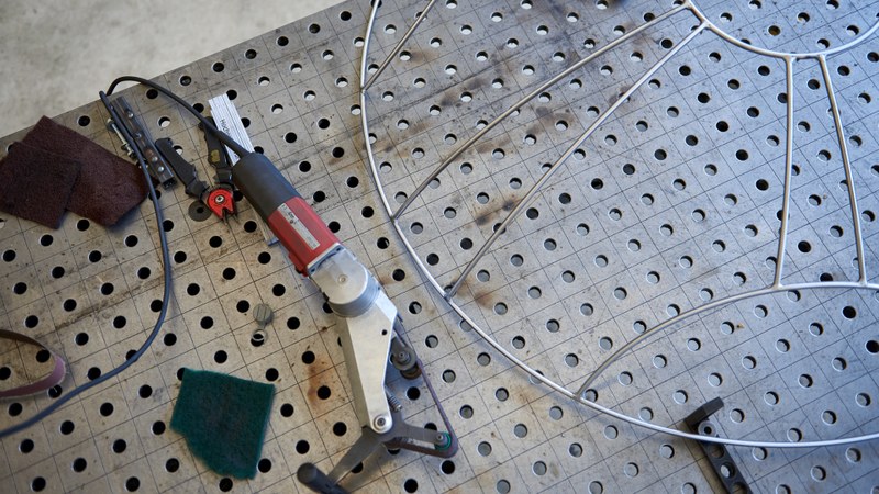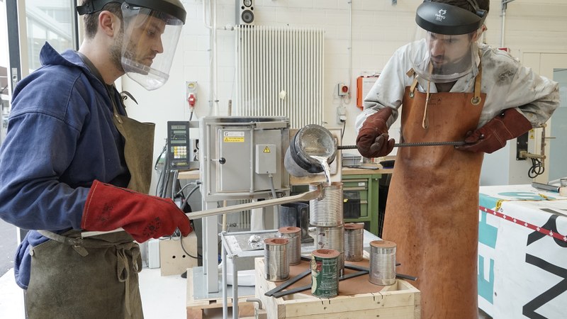 In our metal workshop, students produce all kinds of locksmithing and metal works. From large frame constructions for installations, to mechanical components and fashion accessories, to sophisticated cast metal objects.