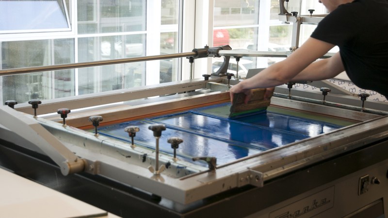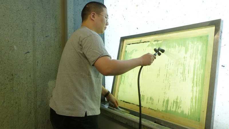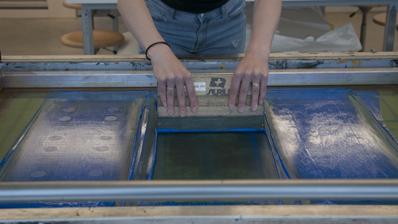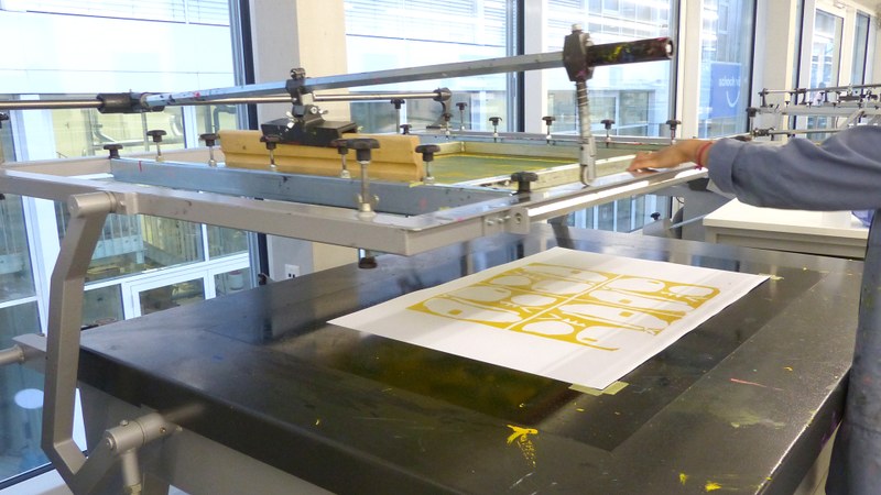 In addition to the optimization and output of exposure templates, students learn how to prepare screens for coating (this includes coating, exposure, washing out) as well as printing on paper, cardboard, and textiles. They also test different colour systems, including the mixing of printing inks and experimenting with different colour contrasts.