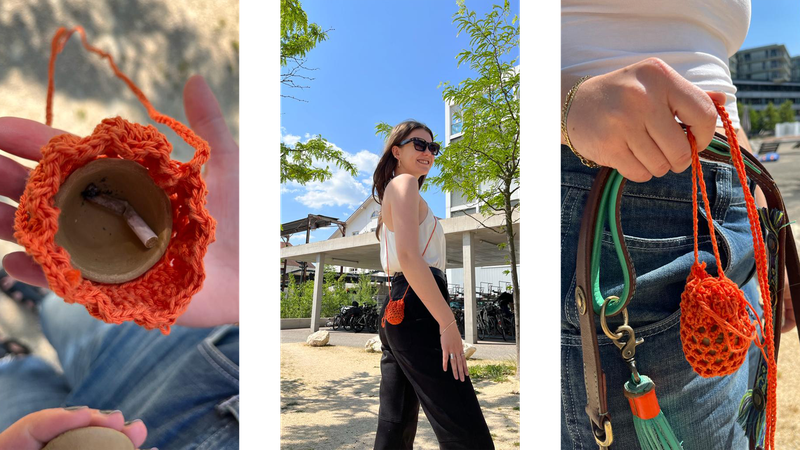 Jiho Kim and Victoria Juretko explored new manufacturing and material possibilities. The crocheted wearable ashtray PUFF, for example, offers festival-goers a sustainable "on-the-go" solution.