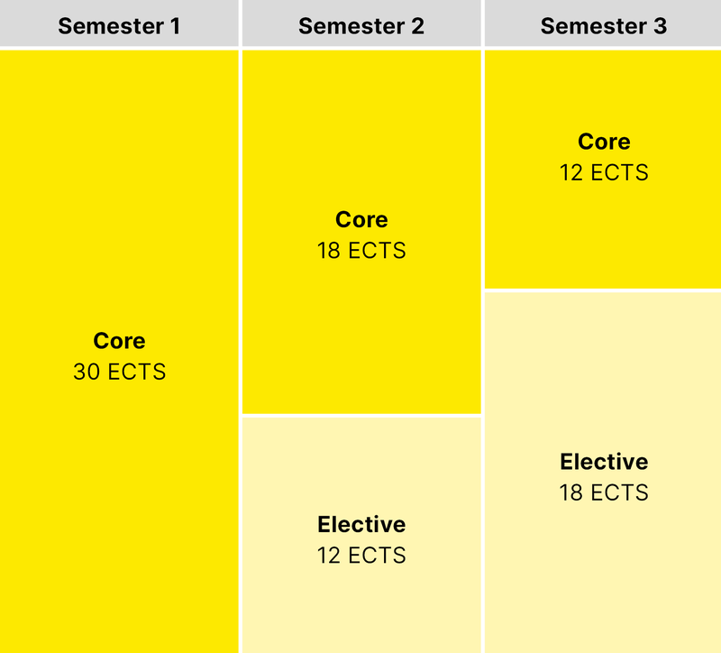 Students in the Master of Finance programme must earn a minimum of 90 ECTS, of which 60 must be earned through core modules and 30 through elective modules. The content covers four central areas of expertise.