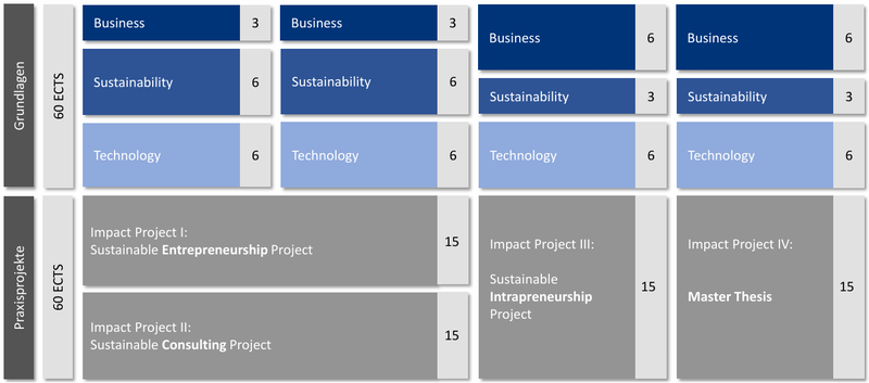 - Fundamentals (15 ECTS): Theoretical foundations in economics, technology and sustainability.