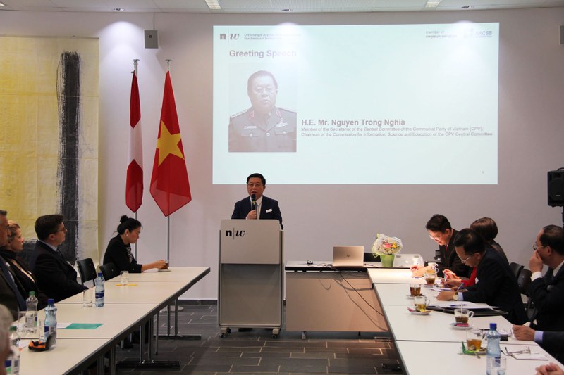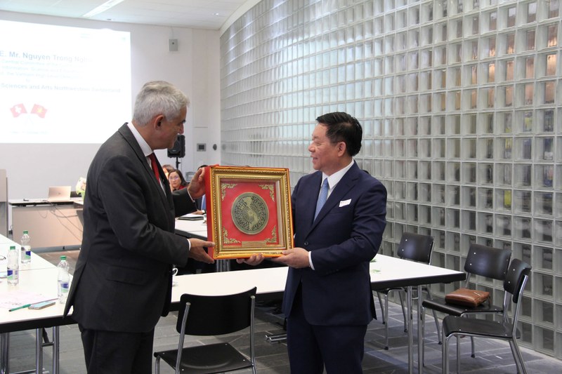 The delegation was welcomed by Crispino Bergamaschi, president of FHNW. In his greeting note, H.E. Mr. Nguyen Trong Nghia emphasized the long-standing good relationship between Vietnam and Switzerland and highlighted successful education collaboration programmes with the FHNW School of Business. He also stated that the Vietnamese government is pursuing a strategy that promotes education as a key factor for increasing prosperity and growth.