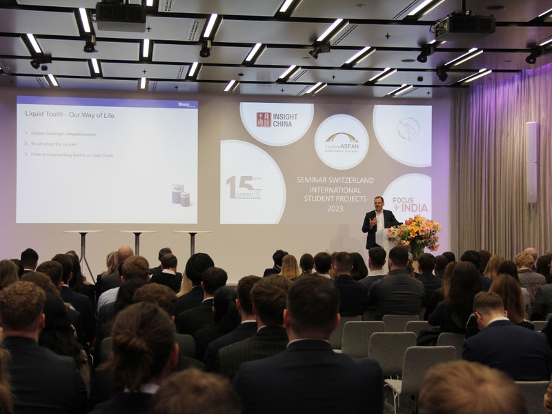 At the beginning of an equally intensive and insightful week, Marc Blaser, CEO of the projects’ joint platinum sponsor Blaser Swisslube, delivered an inspiring welcome address to the FHNW students and staff. In his speech, Marc Blaser underlined the importance of international relations for the export-oriented Swiss economy and the demand of employers for specialists who are well-versed in working in multinational and multicultural teams.