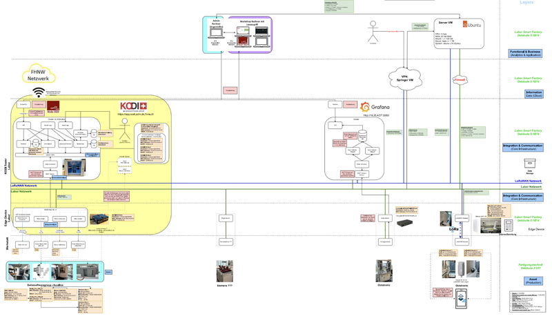 Integration von Produktionsanlagen und Maschinen mittels Edge und SCADA Devices. Parktische Umsetzung des Referenzarchitektur Modells Industrie 4.0 (RAMI4.0) zur vertikalen Integration von Assets. Es können bis zu 1'200 Parameter in Echtzeit von Bearbeitungsmaschinen (CNC-Fräsmaschinen) erfasst und verarbeitet werden.