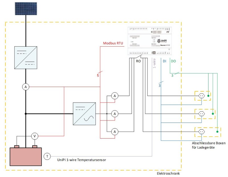- System design and dimensioning (PV + buffer storage) of the charging station for a given number of e-bike charging stations.