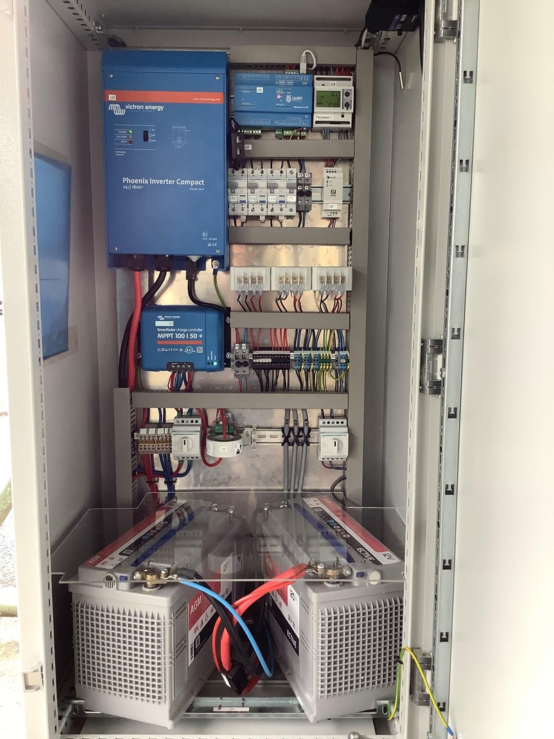 Figure 2: Opened charging station with batteries, power electronics and control unit.