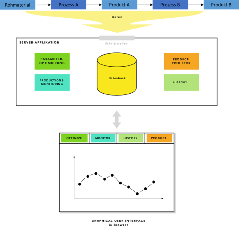 Production should be optimized across all processes regarding the properties of the products and production efficiency. For this purpose, a software application should be developed that centrally collects all data and makes it easily accessible for visualization, optimization, and prediction.