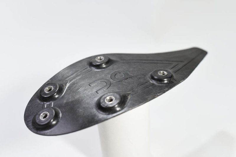 As a starting material, carbon fibre waste from the aerospace and automotive industries is reused, which is processed together with a thermosetting polymer to form a Sheet Molding Compound (SMC). The SMC material is cut to the required weight in the Speedboard production process, placed in the mold cavity and pressed for 5 minutes. After demolding, no additional adjustments are necessary and the Speedboard is ready for the joining process with the upper shoe.