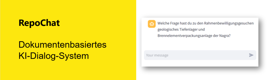 Im Rahmen RepoChat-Projekt wurde ein dialogbasiertes KI-System entwickelt, das auf einem grossen Sprachmodell (LLM) und Retrieval-Mechanismen basiert. Über ein Chat-Interface erhalten geologische Fachpersonen und Interessierte direkten Zugang zu den Berichten der Nagra. Das System beantwortet sowohl allgemeine als auch komplexe Fachfragen, etwa zu Gesteinseigenschaften, Standort-Sicherheitsanalysen und Rückholungskonzepten im Zusammenhang mit der Entsorgung radioaktiver Abfälle.