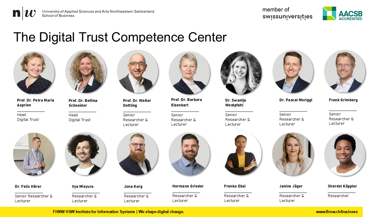 - Digital Trust is important for Switzerland as a competitive location and for Europe! We use the proven concepts from governance, risk management and compliance (GRC) as well as from auditing as foundation.
