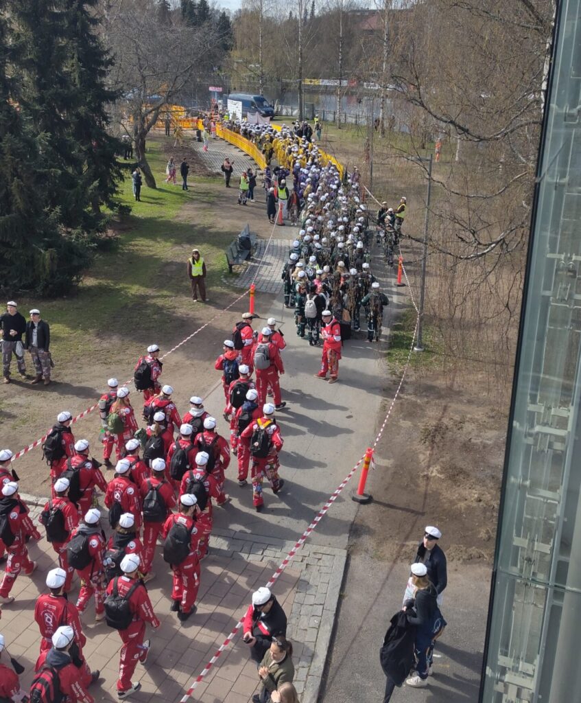 Tampere ist eine richtige Studentenstadt. In der Einführungswoche heisst die Universität die Neuankömmlinge mit einem besonderen Programm willkommen – voller Aktivitäten, die das Knüpfen erster Kontakte erleichtern. Ein besonderes Highlight: Jede Studentin und jeder Student trägt zu den Events einen Overall, der mit jedem Besuch ein neues Abzeichen erhält (siehe Abb. 10). Mit der Zeit werden die Overalls so zu einer bunten Collage aus «Erinnerungstücken». Und was wäre ein Finnland-Aufenthalt ohne Sauna? Bereits in der ersten Woche besuchte Dominik Wieder die «Welcome Sauna».