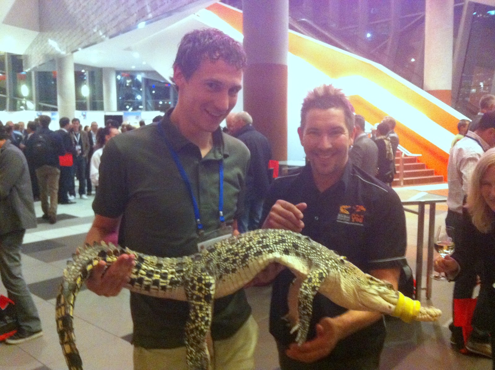 Bereits an der Eröffnungsveranstaltung am ersten Kongresstag wurden wir standesgemäss von einem Aborigine in die Kultur und speziell in die Musik des Landes eingeführt. Am anschliessenden Apéro konnten wir dann auch die typischen, wunderschönen aber teilweise auch sehr gefährlichen Tiere des Landes bestaunen.