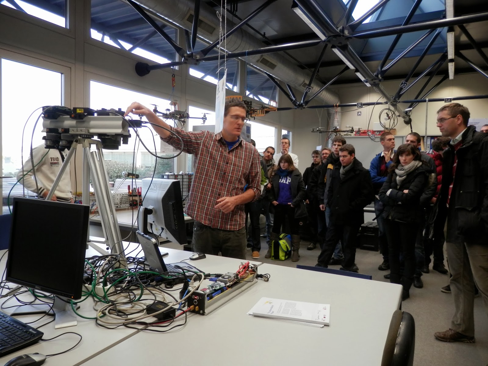 Am Nachmittag nahmen wir dann an der Herbstveranstaltung 2013 des SGPF an der EPFL teil. Dabei wurden uns abwechslungsreiche Themen, von den heutigen Herausforderung und Lösungen bei der Sensororientierung bis hin zur Fernerkundungsanwendung mit hyperspektralen Sensoren montiert an Ultraleichtflugzeugen zur hydrologischen Analyse des Genfer- und Baikalsees, präsentiert. Zu guter Letzt, erhielten wir eine Präsentation der unterschiedlichen luftgestützten Fernerkundungssysteme die vom Team um Dr. Jan Skaloud entwickelt wurden.