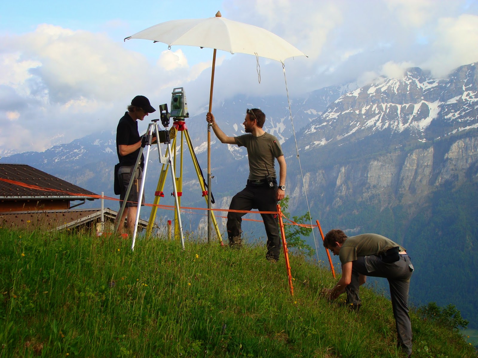 … das Felssturzgebiet “Schwanderbärgli“ in Schwanden bei Brienz? Wenn ja, wieviel und in welche Richtung? Langsamer, gleichbleibend oder schneller als in den vergangen Jahren? Die Einwohnergemeinde Schwanden möchte es wissen! In deren Auftrag werden Studierende des 6. Semesters die Deformationen im Rahmen eines Blockkurses vom 12. – 23. Mai 2014.messen, berechnen, analysieren und visualisieren. Das Vermessen des ca. 7 Millionen Kubikmeter umfassenden Bergsturzgebiets auf einer Fläche von rund 30 Hektaren ist eine typische Ingenieur-Geodätische Aufgabe, die von allen viel abverlangt. Das integrale Ausbildungsprojekt umfasst die Vertiefung der Kompetenzen in der Mess-, Auswerte- und Visualisierungstechnik und vereinigt dabei die Aspekte der Organisation, der Kommunikation, der Betriebsökonomie und der Öffentlichkeitsarbeit.