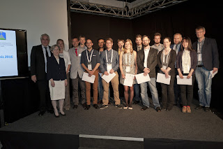 | Finalistinnen und Finalisten des Karl Kraus Nachwuchsförderpreises 2016 zusammen mit den Jurymitgliedern und den Präsidenten der SGPF, DGPF und OVG (Bild © SOGI/GEOSummit) |