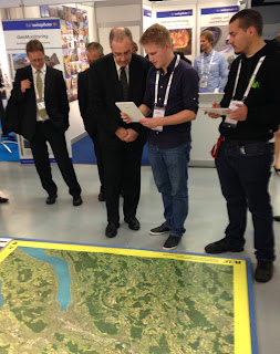 Als Highlight beteiligte sich das Institut an einem Messestand zusammen mit iNovitas, Swisscom und Land2Map. Die Besuchenden konnten am Stand des IVGI die neue Augmented Reality App swissARena auf mobilen Geräten testen. Dabei bestand die Möglichkeit den Live-Flugverkehr, das aktuelle Wetter und Adressen über einem Luftbild vom Grossraum Zürich überlagert anzeigen zu lassen. Diese App wurde in Zusammenarbeit mit Axon Vibe und dem Verkehrshaus der Schweiz realisiert. Sie fand bei den Besuchenden grossen Anklang. Auch Bundesrat Guy Parmelin besuchte den Messestand und schaute sich die swissARena App an. Dank der Anwesenheit von Studierenden und Mitarbeitenden konnten die Interessenten rund um die Studiengänge, Weiterbildungsangebote, Forschungsarbeiten und Projektarbeiten informiert werden.