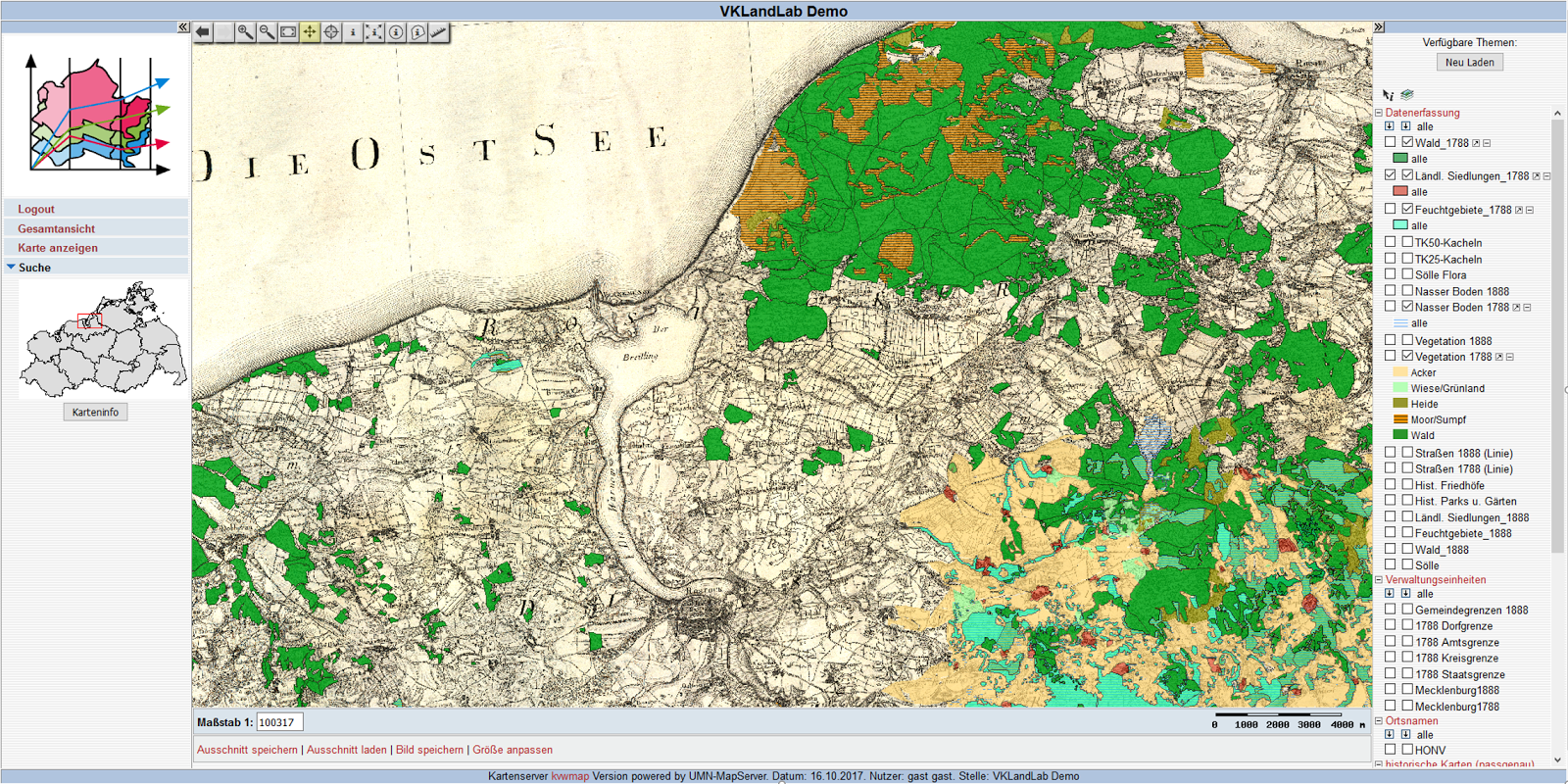 | Altkartendigitalisierung und Landschaftsanalyse mit dem WebGIS-Tool KVWMAP |