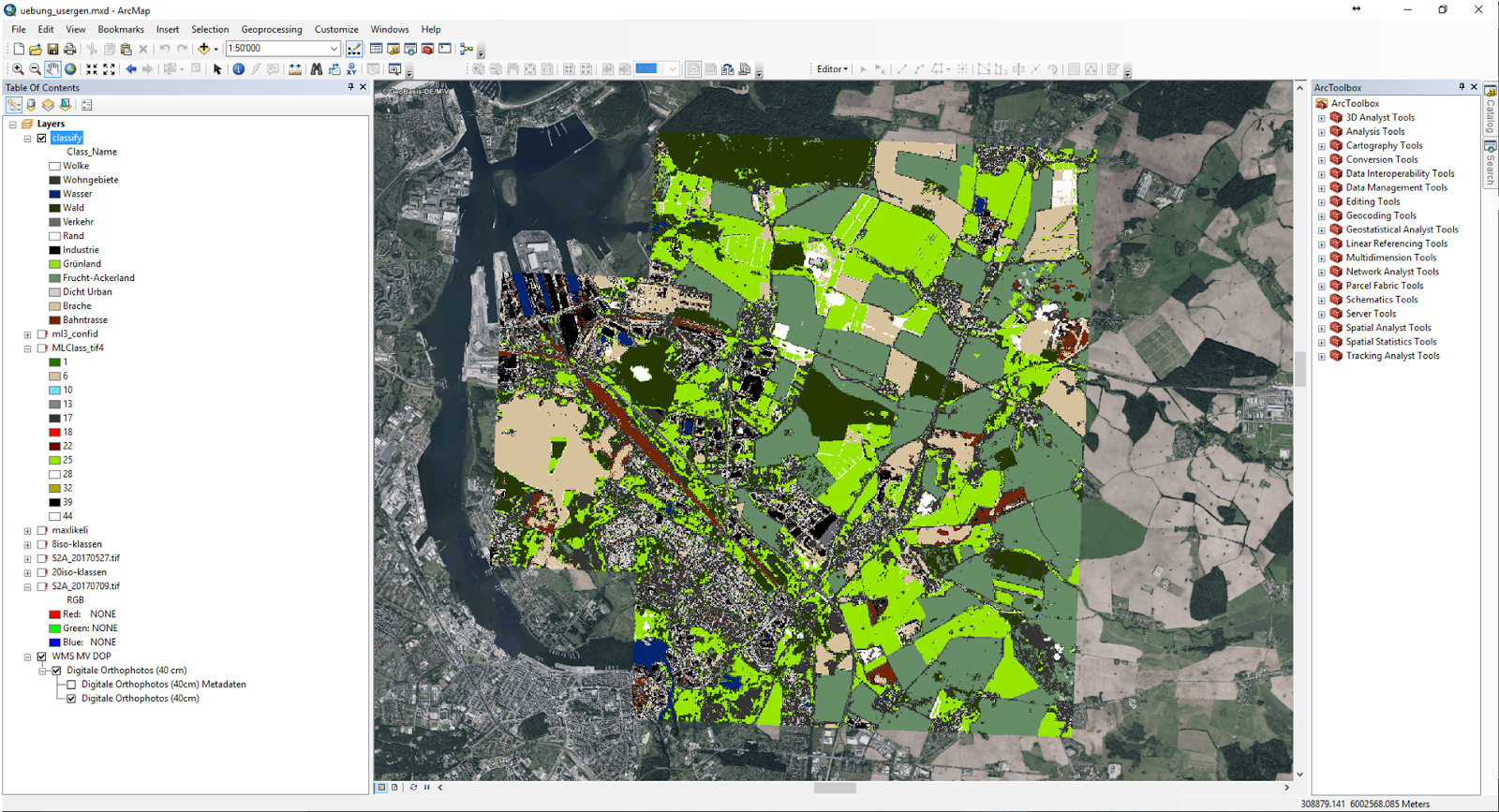 | Klassifikationsergebnisse aus Sentinel-2 Multispektral-Datensätzen in ArcGIS |