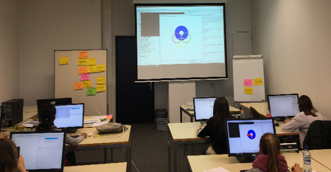 Ihre erste Programmiersprache (Python) konnten die Schülerinnen im Informatik-Workshop lernen.