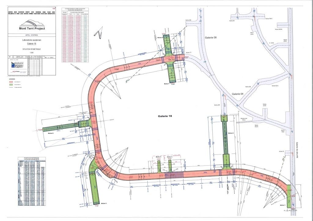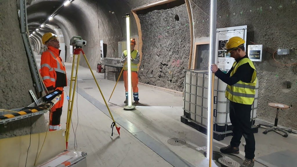 Dazu braucht es u.a. ein hochgenaues Grundlagen- und Deformationsnetz, welches seit 2007 besteht und regelmässig (alle 2 Jahre) in Zusammenarbeit mit der swisstopo überprüft und erweitert wurde. Es dient einerseits als Grundlage für die Georeferenzierung von Experimenten, welche einen geodätischen Bezug in Form von dreidimensionalen Koordinaten brauchen und andererseits als Deformationsnetz, damit kleinste Bewegungen im Fels, sei es natürlich oder künstlich erzeugt, detektierbar sind; letzteres begründet die hohe Präzision, die gefordert wird.