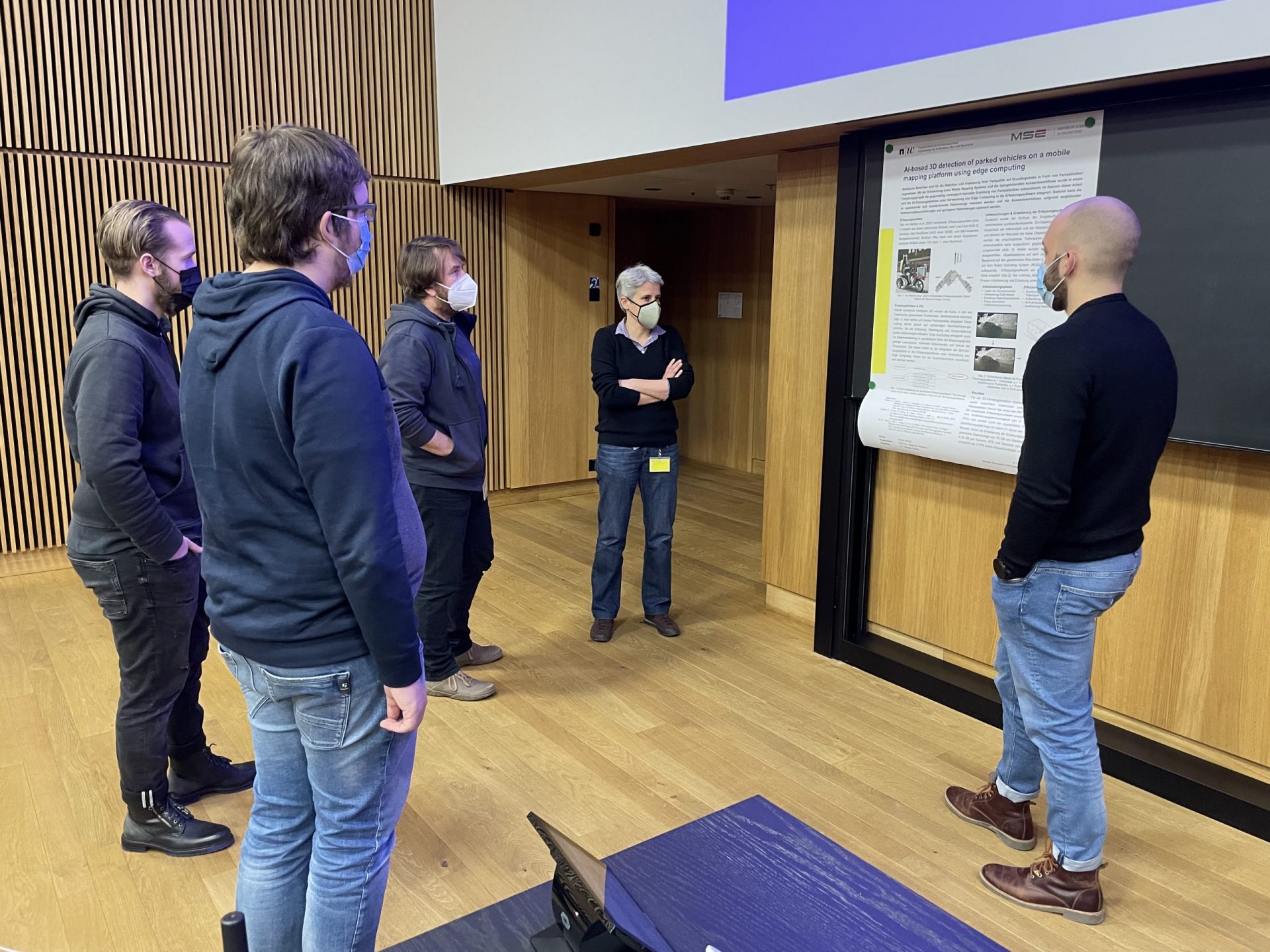 Am Masterforum vom 14. Januar präsentierten zwei Studenten die Resultate ihrer Masterthesen, die sie während des gesamten Herbstsemesters 2021 erarbeitet hatten. Die hybrid durchgeführte Veranstaltung wurde aufgrund der Home-Office-Pflicht mehrheitlich online besucht. Daher war die Belegung des Hörsaals bewusst tief und es fanden sich nur wenige Mitarbeiterinnen und Mitarbeiter des Instituts sowie vereinzelte Studentinnen und Studenten vor Ort, aber dafür umso mehr online ein.Beide Arbeiten hatten einen starken Bezug zum bildbasierten Parkplatzmonitoring (BiPaMo) – ein gemeinsames Forschungsprojekt mit dem Amt für Mobilität des Kantons Basel-Stadt. Dabei wurde ein elektrisches Mobile Mapping-System (EMMS) mit low-cost Sensorik für das Parkplatzmonitoring inklusive Workflow für die Auswertung entwickelt (Nebiker et al., 2021).Als erster präsentierte Jonas Meyer seine Masterarbeit mit dem Titel «AI-based 3D detection of parked vehicles on a mobile mapping platform using edge computing». Sein primäres Ziel war, dass die Fahrzeugdetektion, die bisher in zeitaufwändigen nachträglichen Auswerteschritten erfolgte, künftig gleich in Echtzeit während…
