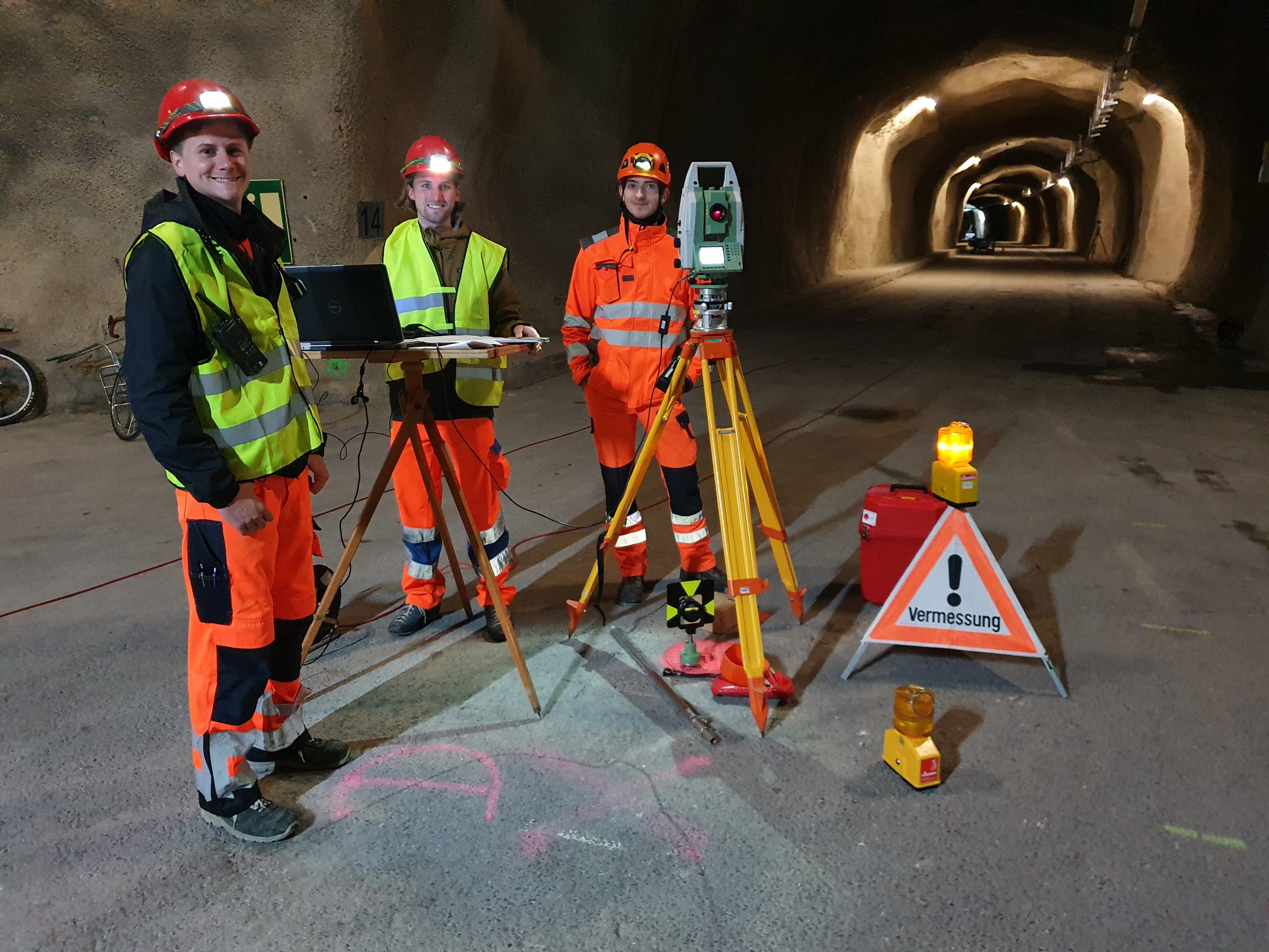 Das Felslabor besitzt ein hochgenaues Grundlagen- und Deformationsnetz, welches im Rahmen des Blockkurses «Ingenieur-Geodäsie» in diesem Jahr (nach 2011, 2013, 2015, 2017 und 2021) von der FHNW bereits zum 6. Mal gemessen wird. In den vergangen 4 Jahren gab es viele Aktivitäten in der neuen Galerie18, wo neue Experimente angelaufen sind, welche durch bauliche Massnahmen entsprechende Einflüsse auf das umliegende Gestein und somit auch auf die Fixpunkte ausüben. Diese künstlich erzeugten geologischen Veränderungen, welche auch durch natürliche überlagert sind, gilt es, hochgenau zu erfassen, um den bisherigen Trend weiter zu verfolgen und damit die Zeitreihenanalyse weiterzuführen. Ein spezieller Fokus liegt in diesem Jahr auf der Untersuchung des Einflusses von systematischen Effekten auf die Koordinatenbestimmung in der Galerie18. Sie treten insbesondere entlang dem Polygonzug, welcher durch die Sicherheitsgalerie (4.4 Km) vom Nord- zum Südportal führt, auf.