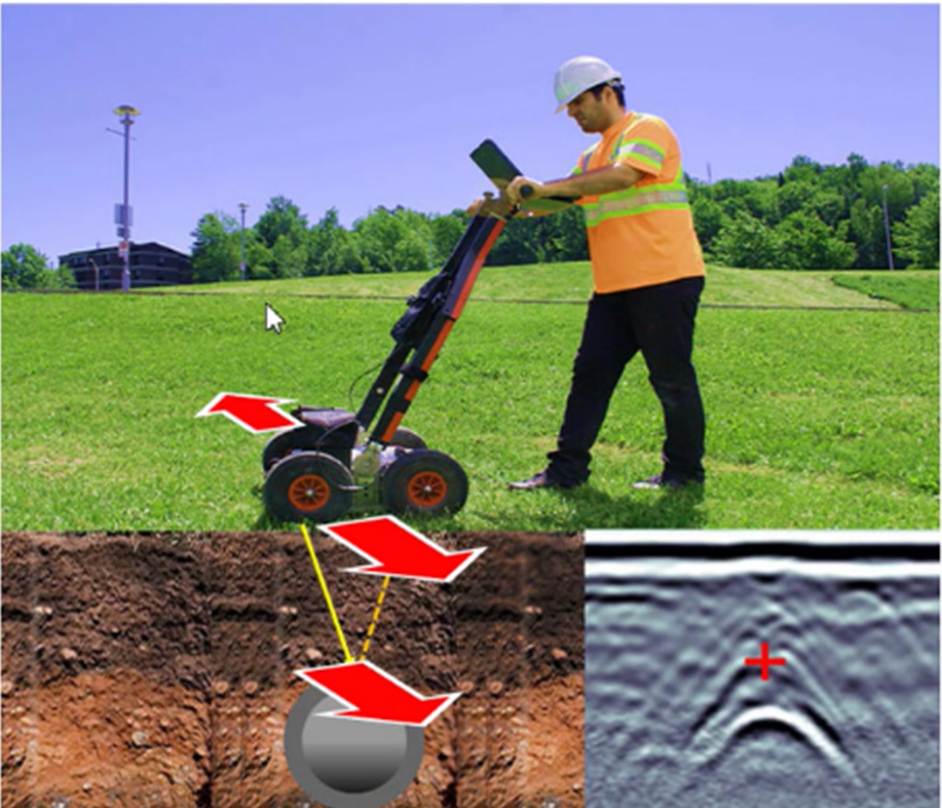 Ein Bodenradar ist ein Instrument, dass mit hochfrequenten elektromagnetischen Wellen die Beschaffenheit des Untergrundes aufzeigen kann. Dabei wird ein elektromagnetisches Signal in das Terrain ausgesendet und im Untergrund reflektiert. So reflektiert z. B. eine Wasserleitung das Signal sehr stark. Dafür werden Dipolantennen verwendet. Die Ausrichtung der Antenne beeinflusst das Resultat stark. So kann eine Leitung, die parallel zur Antenne steht, sehr gut detektiert werden und eine, die rechtwinklig dazu steht, im Rauschen untergehen. Deshalb nimmt man das Messgebiet in vielen Projekten oft längs und quer auf. So werden möglichst alle Strukturen erfasst.