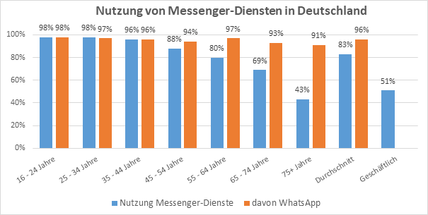 Quelle: https://www.messengerpeople.com/de/studie-messenger-nutzung-2020-deutschland/#Beruflich / Eigene Darstellung