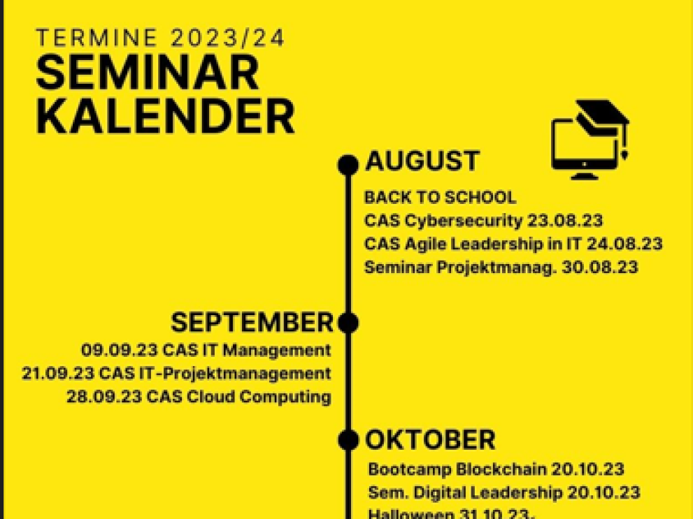 Fach- und Führungskräfte sind heute besonders gefordert, wenn es um die digitale Transformation geht. Daher haben wir unser Weiterbildungsprogramm 2023/2024 hierauf ausgerichtet. Der Ausweis von digitalen Kompetenzen ist zentral für den Lebenslauf, im Bewerbungsprozess und am Arbeitsplatz.Gerne stehen wir Ihnen für Fragen zum Programm für ein persönliches Beratungsgespräch zur…