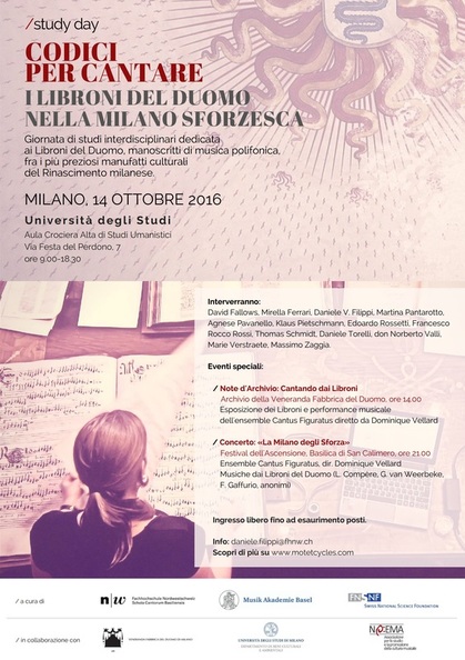 Thanks to the patronage of the Sforza dukes, notably Galeazzo Maria and Ludovico il Moro, from the 1470s Milan became one of Europe’s musical capitals. The four “Libroni” (the last of which was heavily damaged by a fire in 1906) are the only extant witnesses of the city’s contemporary musical repertory: they are, therefore, among the most important cultural artefacts of the Milanese Renaissance. Aim of the study day is to address the main open questions regarding the origin and use of the Libroni, to contextualize them both from the perspective of musicological studies and from that of other disciplines (liturgical studies, codicology, cultural history), and to further explore the repertory they contain.