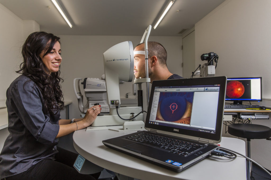 Mithilfe eines Topografen werden die Hornhautradien, also die Wölbung der Hornhaut gemessen. Vor allem für die Anpassung von Kontaktlinsen ist die genaue Bestimmung der Hornhautform wichtig, damit die passende Kontaktlinse ausgewählt werden kann. Hierfür ist es wichtig festzustellen, ob die Hornhaut kugelförmig ist, oder ob sie eine Hornhautverkrümmung aufweist, das heisst, ob sie in ihrer Form eher einer Kugel oder einem Ei gleicht.