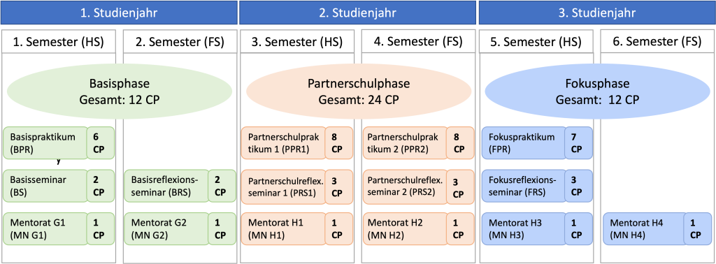 Übersicht Berufspraktische Studien IP im Studienverlauf