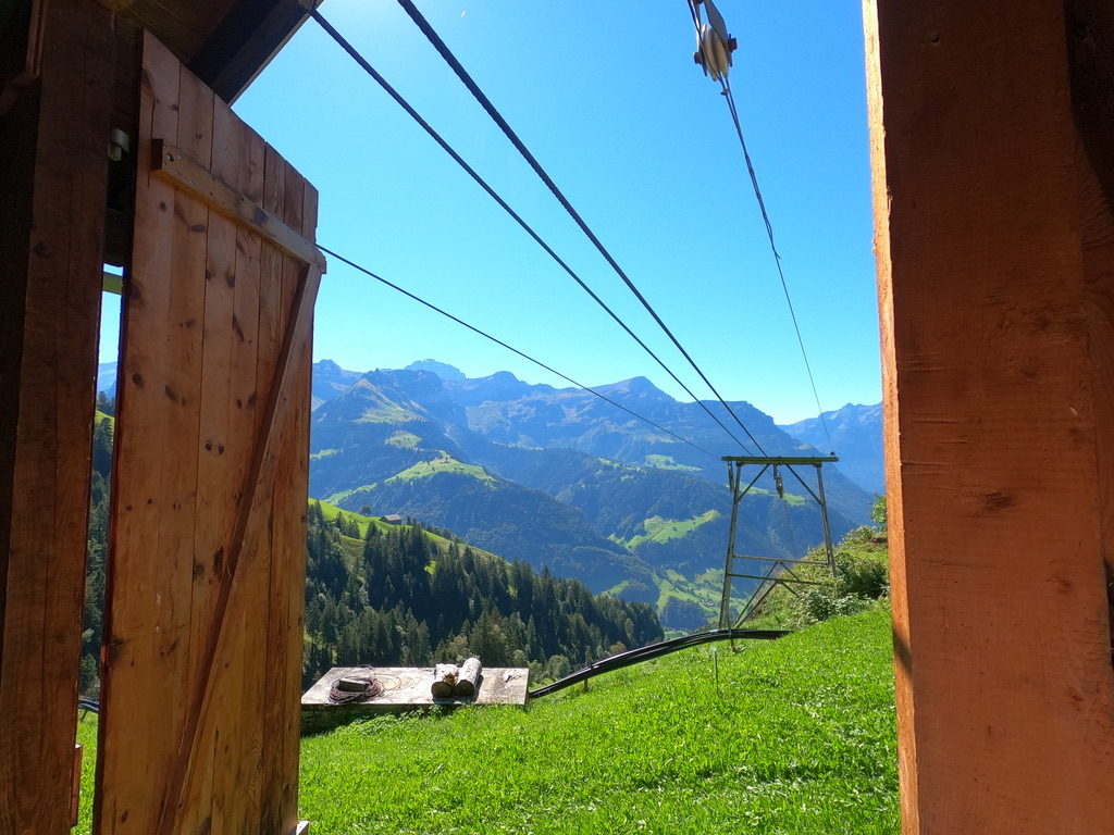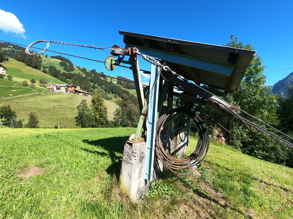 Das Heimet auf der Schwand (oberhalb der Mittelstation Äbnet der Seilbahn Eierschwand-Ruogig) wird durch eine einzigartige Materialseilbahn erschlossen. Die Streckenführung, die aufwändige Technik und insbesondere die wunderschöne Bergstation (Bilder unten) machen diese Bahn zu einem perfekten Anschauungsbeispiel. Dazu gehört, dass sie wie viele Seilbahnen wiederverwendet wurde: Bis 1990 war sie im Kanton Luzern (Schüpfheim) im Gebrauch und wurde dort noch mit Diesel betrieben. Die Firma Schilter (Erstfeld/Uri) hat sie dann auf Strombetrieb umgerüstet und im Schächental installiert.