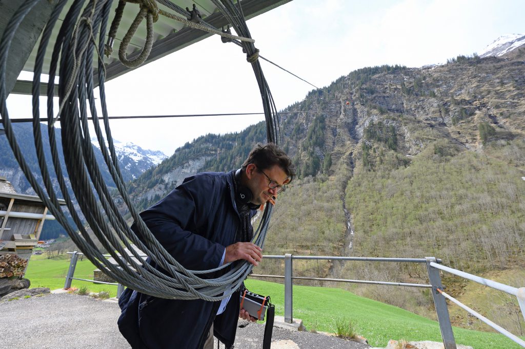 Hörkontrolle an der Materialseilbahn Stutz-Obsaum (Foto: Christof Hirtler)