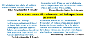 Wir haben unsere Studierenden gefragt, was Kompetenzmodule für sie bedeuten. Klicke auf die Bilder, um alle Texte lesen zu können.