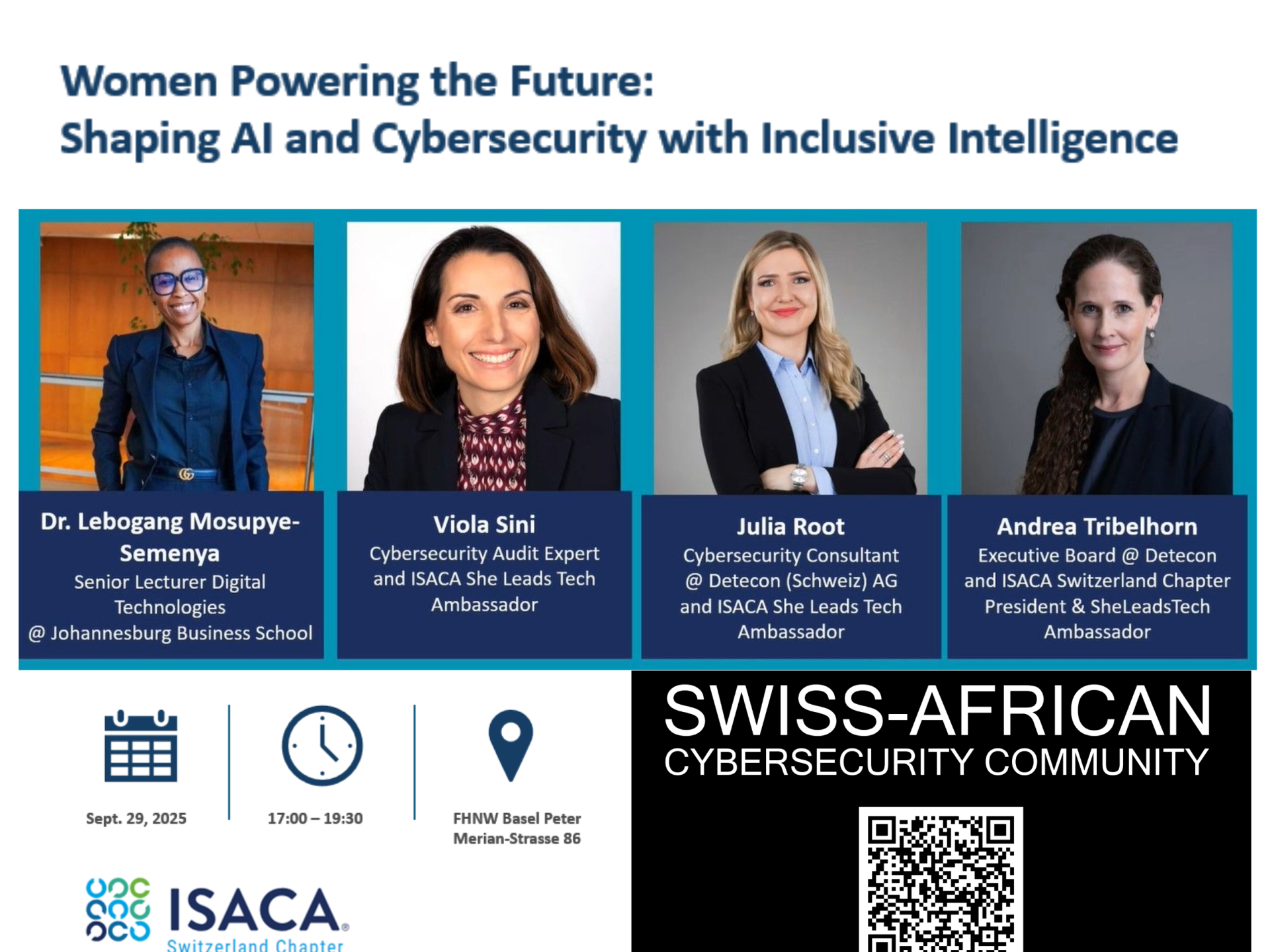 The ISACA SheLeadsTech Community, in collaboration with the University of Applied Sciences and Arts Northwestern Switzerland (FHNW) and the Competence Centre Digital Trust, invites you to attend the workshop “Women Powering the Future: Shaping AI and Cybersecurity with Inclusive Intelligence.”The workshop will take place on September 29, 2025 from 17:00…