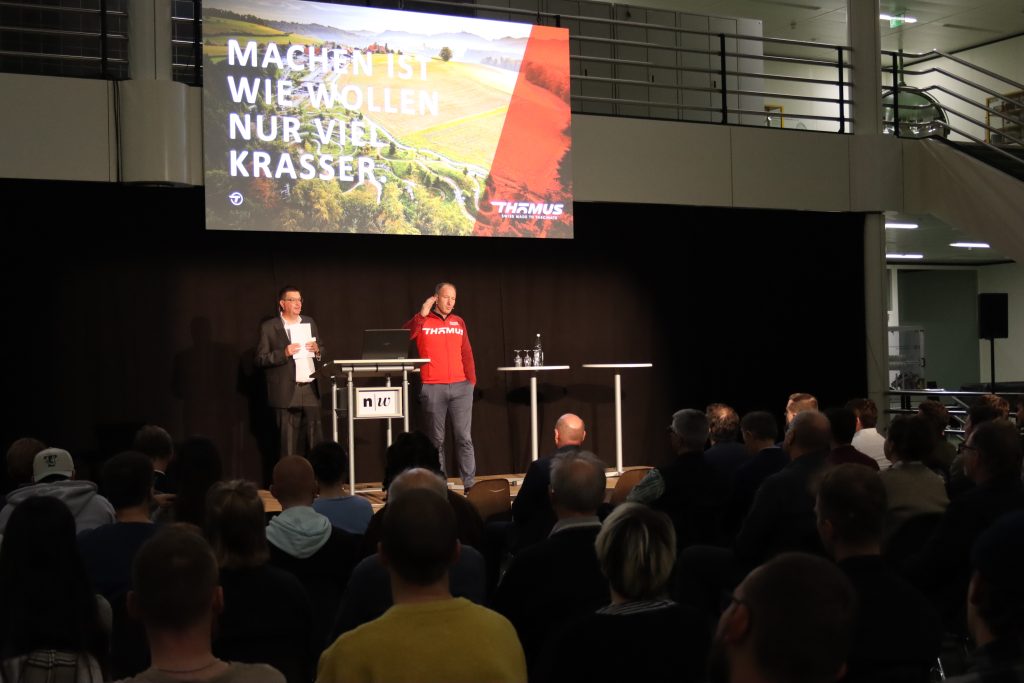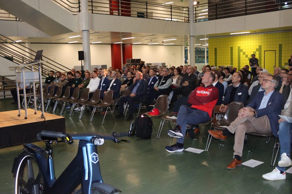 Keynote-Speaker Thomas Binggeli ist Velounternehmer, CEO und Inhaber von Thömus. Er entwickelte das bekannte E-Bike «Stromer» und unterstützt das Team Thömus maxon Swiss Mountain Bike Racing. In seinem Vortrag sprach er leidenschaftlich und mit eindrücklichen Bildern über seine Veloprojekte der letzten Jahre und seine Erfahrungen als Unternehmer. Für ihn ist das Velo in Mobilität, Tourismus und Sport ein vielseitiges Produkt mit grossem Potenzial. Besonders hob er den Twinner hervor – eine Hightech-Entwicklung von Thömus. Dieses Velo steht für moderne Fahrzeugtechnologie auf zwei Rädern und ist zukunftsweisend für die städtische Mobilität. Im Anschluss an die Veranstaltung hatten interessierte Personen die Möglichkeit, eine Testfahrt zu machen und sich eine eigene Meinung zu dieser Innovation zu bilden.