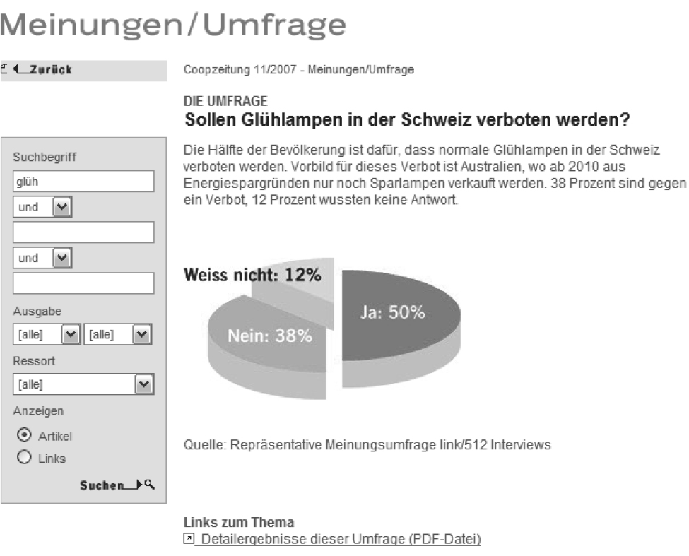 Coop und Migros bilden ihre Wochenzeitungen umfassend im Web ab und halten die alten Ausgaben in den Archiven im Originallayout verfügbar, was sie für kombinierte (print- und internetbasierte) Unterrichtsarrangements attraktiv macht.